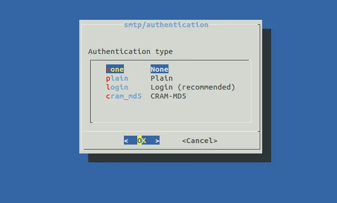选择SMTP并按Enter键。系统将要求您选择身份验证类型: