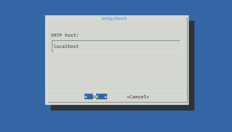 选择无并按Enter键。系统会要求您定义 SMTP 主机: