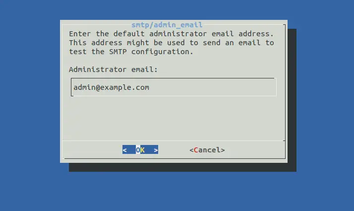 提供您的 SMTP 域并按 Enter 键。您将被要求提供您的电子邮件: