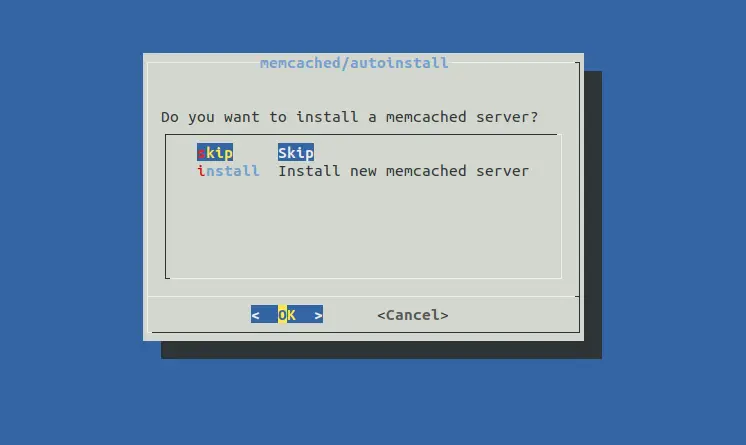 提供您的电子邮件并按Enter键。系统会要求您安装 Memcached 服务器: