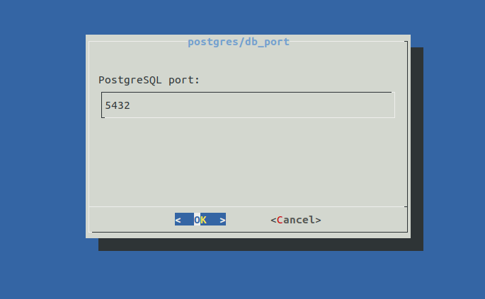 提供本地主机地址并按Enter键。系统会要求您提供 PostgreSQL 端口:
