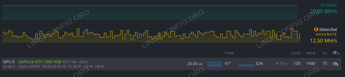 HiveOS Linux 上的 NVIDIA GTX 1060 以太坊超频设置