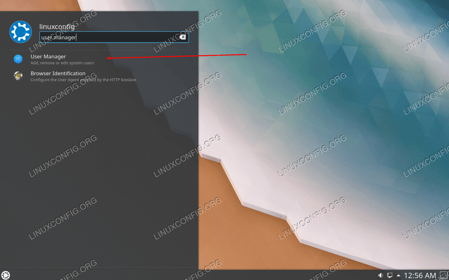 在 KDE 中搜索用户管理器