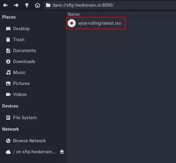 连接后,您应该会看到 Webdav 协议已添加到“网络”部分。在本例中,您可以看到通过SFTP协议和FileZilla上传的ISO文件。