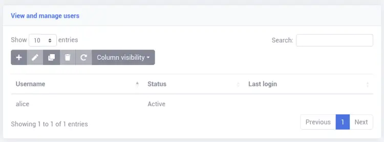 现在,您应该在 sFTPGo 管理仪表板上看到用户列表。