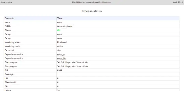 Monit 还允许您通过命令行界面监控所有已配置的服务。