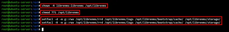 setfacl -d -m g::rwx /opt/librenms/rrd /opt/librenms/logs /opt/librenms/bootstrap/cache/ /opt/librenms/storage/