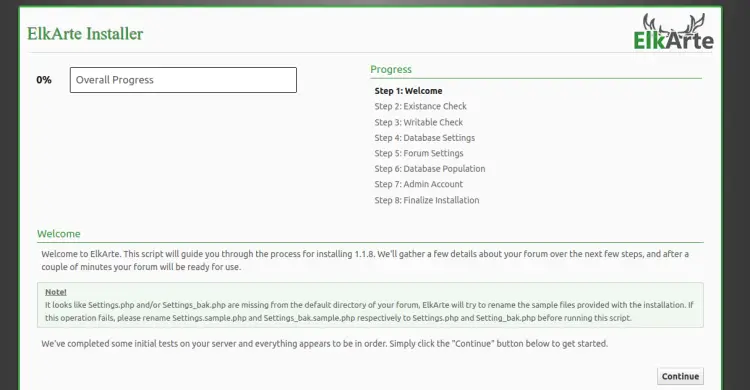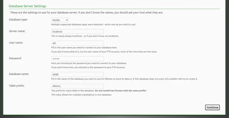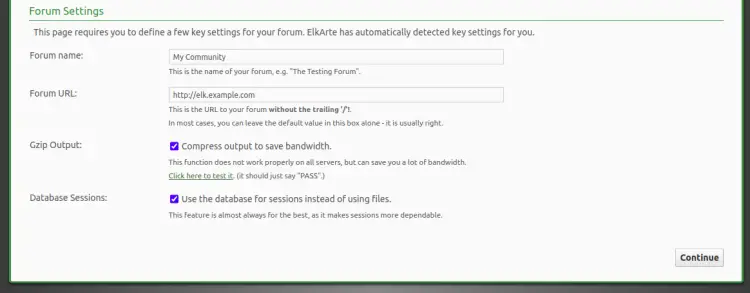 提供您的数据库详细信息,然后单击继续按钮。您应该看到论坛设置页面: