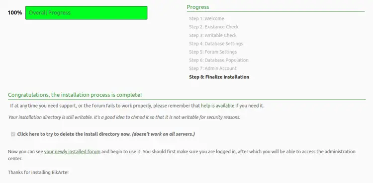 恭喜!您已在 Ubuntu 22.04 上成功安装了带有 Let's Encrypt SSL 的 ElkArte。您现在可以使用 ElkArte 轻松举办您自己的社区论坛。如果您有任何疑问,请随时问我。