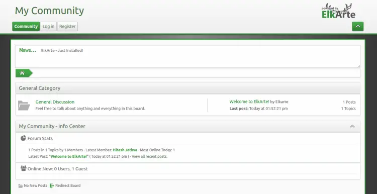 现在,打开您的网络浏览器并输入 URL https://elk.linuxbuz.com。您将被重定向到 ElkArte 欢迎页面: