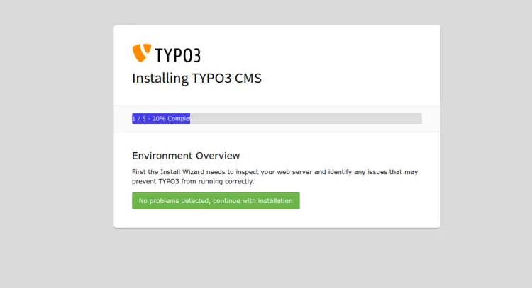 此时,Apache Web 服务器已配置为服务 TYPO3。您现在可以继续下一步。