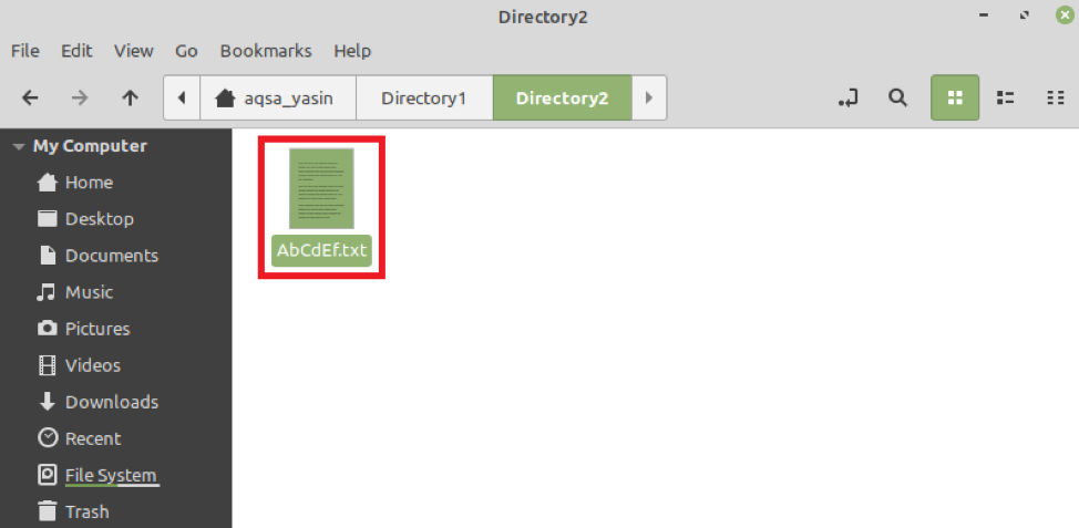 我们现在将尝试查找该文本文件。由于该文件的名称包含大小写字母的组合,因此,该文件名最适合测试“find”命令的有效性。我们将通过运行“find”命令来查找该文件,如下所示: