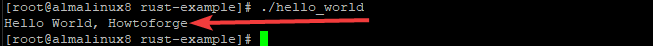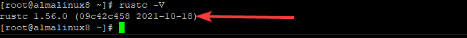 现在我们已经在我们的 AlmaLinux 系统上安装了 Rust,我们将创建一个简单的项目来测试 Rust 安装。
