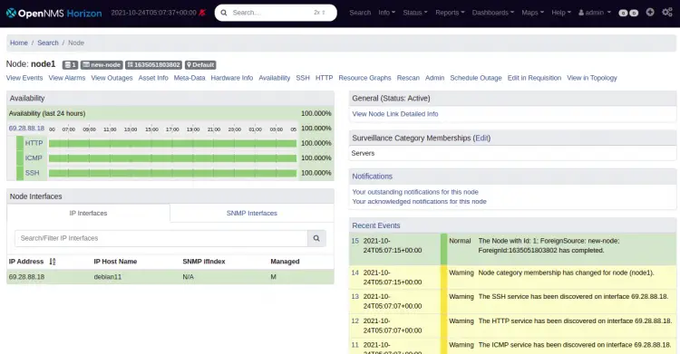恭喜!您已在 Debian 11 上成功安装和配置 OpenNMS。您现在可以将更多主机添加到 OpenNMS 并开始从基于 Web 的界面监控它们。