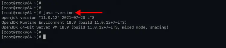 您将看到 Java OpenJDK 11 安装在 Rocky Linux 系统上,如下图所示。