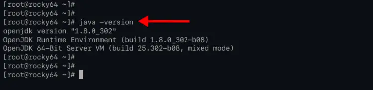 你会看到 Java OpenJDK 1.8 安装在 Rocky Linux 系统上。
