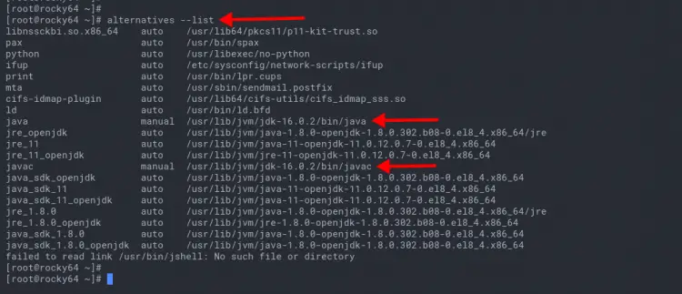 现在您将看到 Java OpenJDK 16.x 可作为 Rocky Linux 系统上的替代品使用