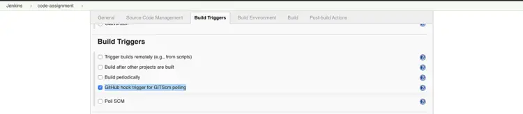 在“构建触发器”选项卡下选择“GitSCM 轮询的 GitHub 钩子触发器”