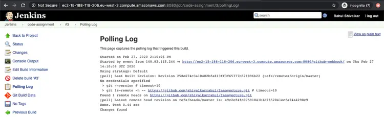 一旦我们将更改推送到 Github 上的存储库,它就会触发我们在 Github Webhook 中添加的 Jenkins 作业。