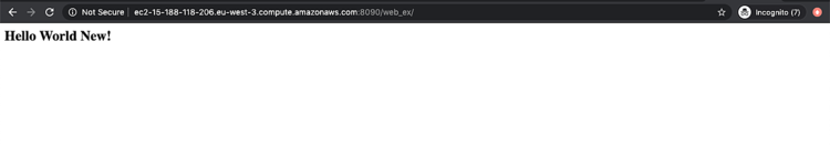如果您注意到我以前的代码只显示“Hello World!”,现在当我在 index.jsp 中进行更改并提交时,最新的应用程序显示“Hello World New!”。