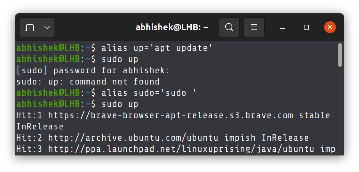让我向您展示一个使用 sudo 运行别名命令的巧妙小技巧。