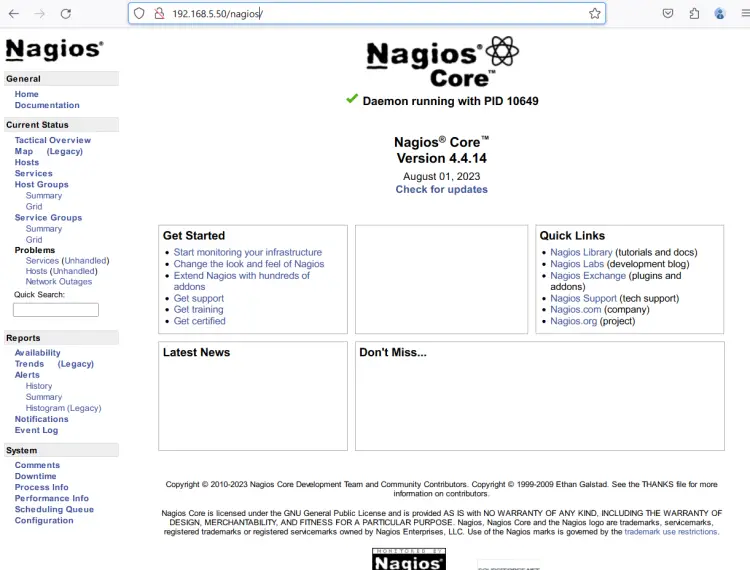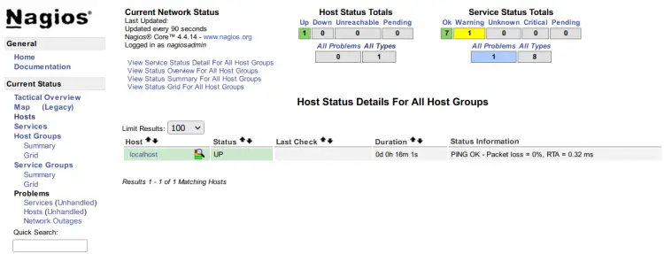 如果您拥有正确的 nagiosadmin 用户密码,您将看到 Nagios 管理仪表板,如下所示: